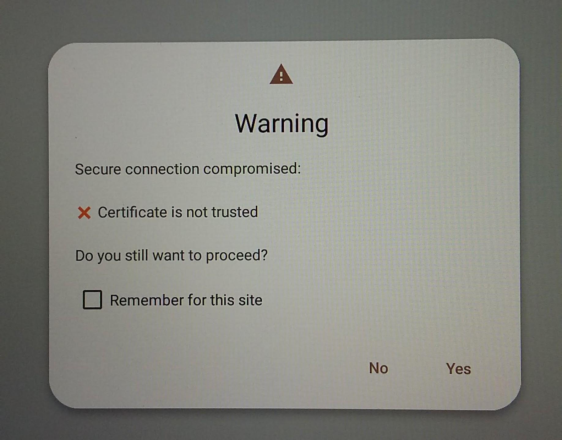 Moshidon and the official Mastodon app don't recognise the server and when I use a browser I get the screen below, which won't let my bypass it (despite the option to).