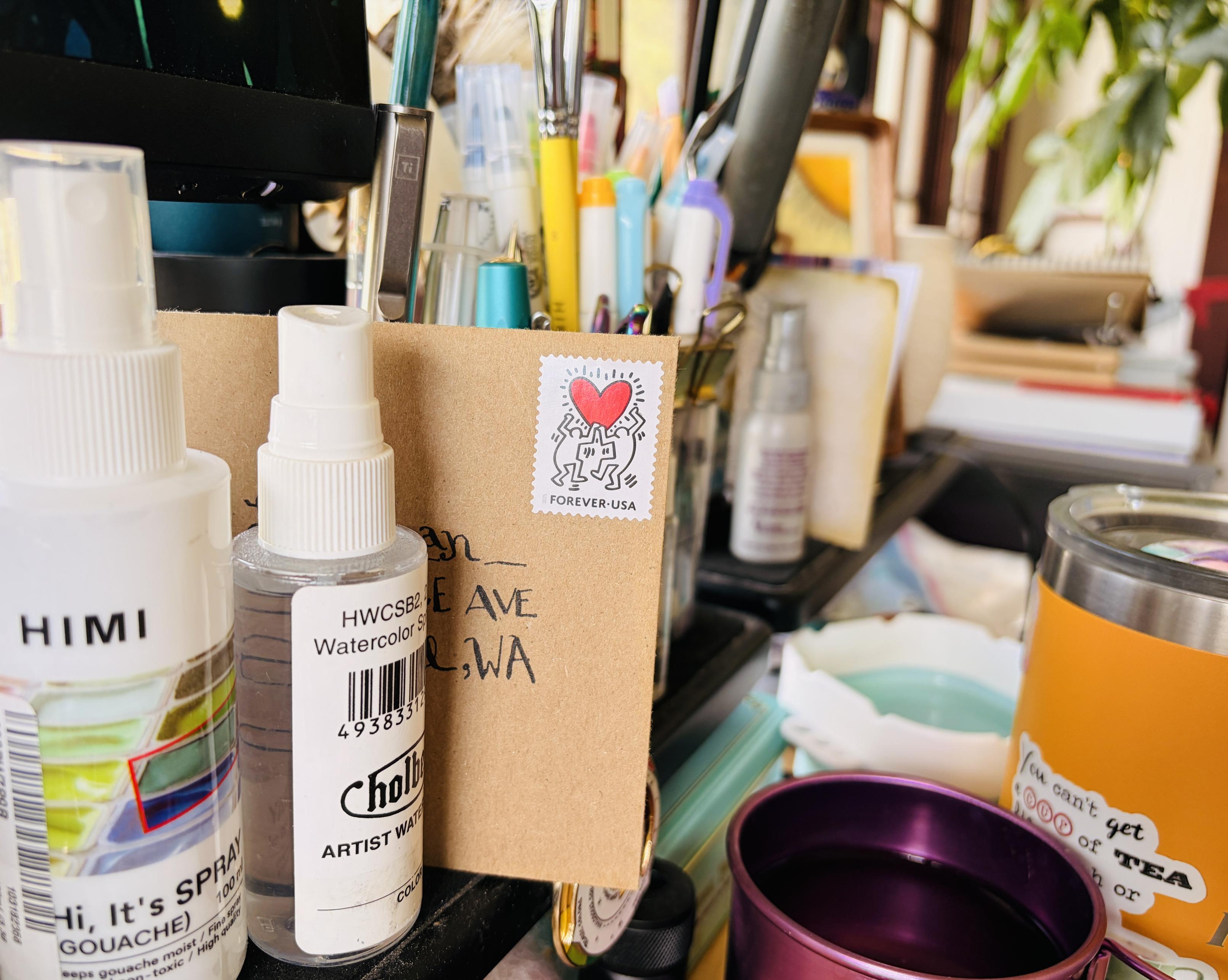 A) Put it on your desk, intending to mail it in a few days when it will arrive just in time for her birthday? And then...actually do that?