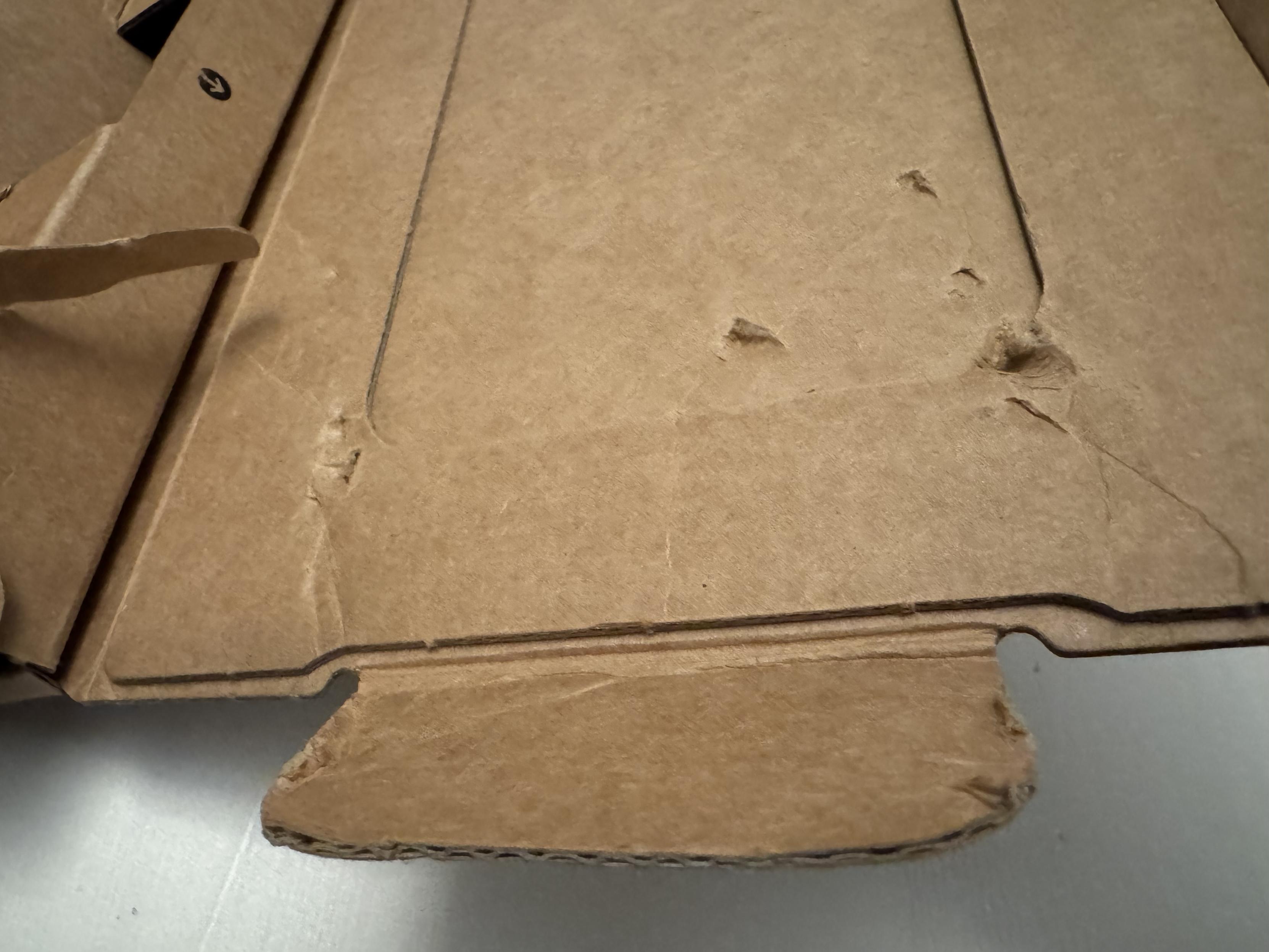 Delivery at some point must have pulled it from the side. Visible damage on the inside as well the side of the box It is bent where they pulled the phone out.