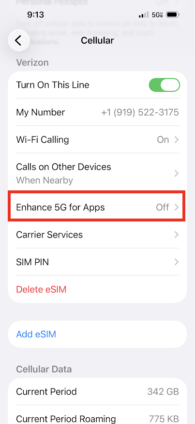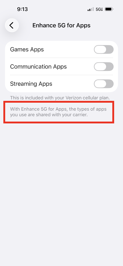 On iPhone devices, Apple calls this feature "Enhance 5G for Apps", which sounds like a good thing. Verizon states that 5G networks lend themselves especially well to this technology.