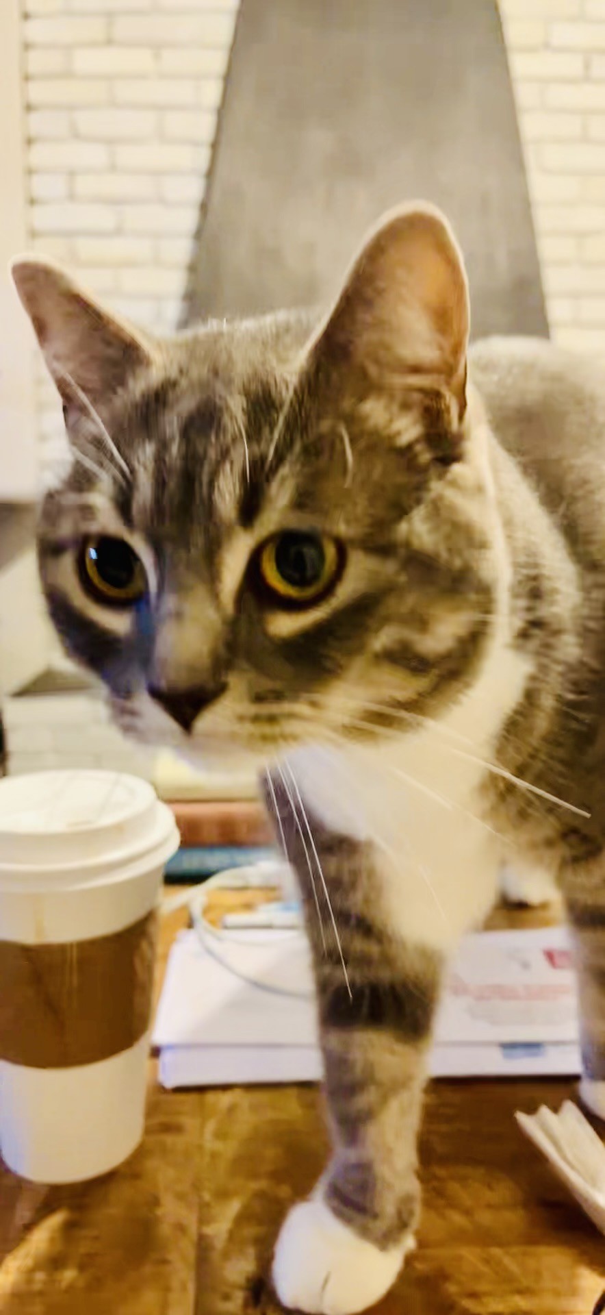 Screenshots of a Friend of a Friend in #Abbotsford …a Kitty in a Beautiful 😻 #BritishColumbia city sitting on a table for Her Saturday #FaceTime