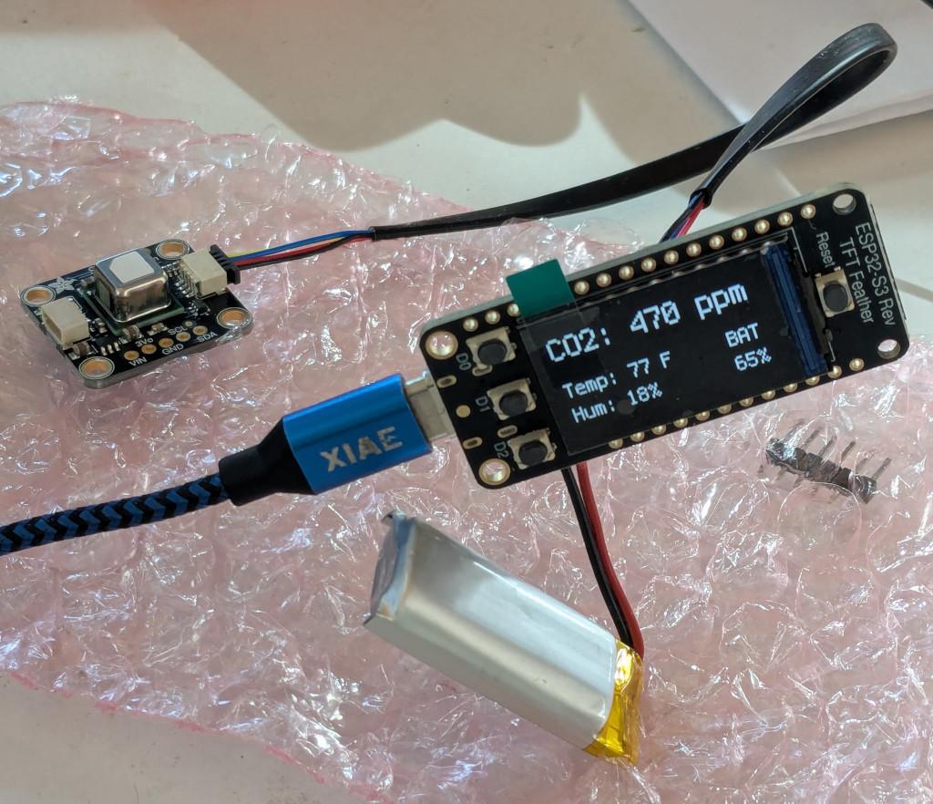 I finally got around to ordering a sensor (SCD40) plus some CircuitPython microcontrollers, and got a basic monitor up and running in a few hours. Fun! Now I just have to build some sort of case to make it easier to carry around.