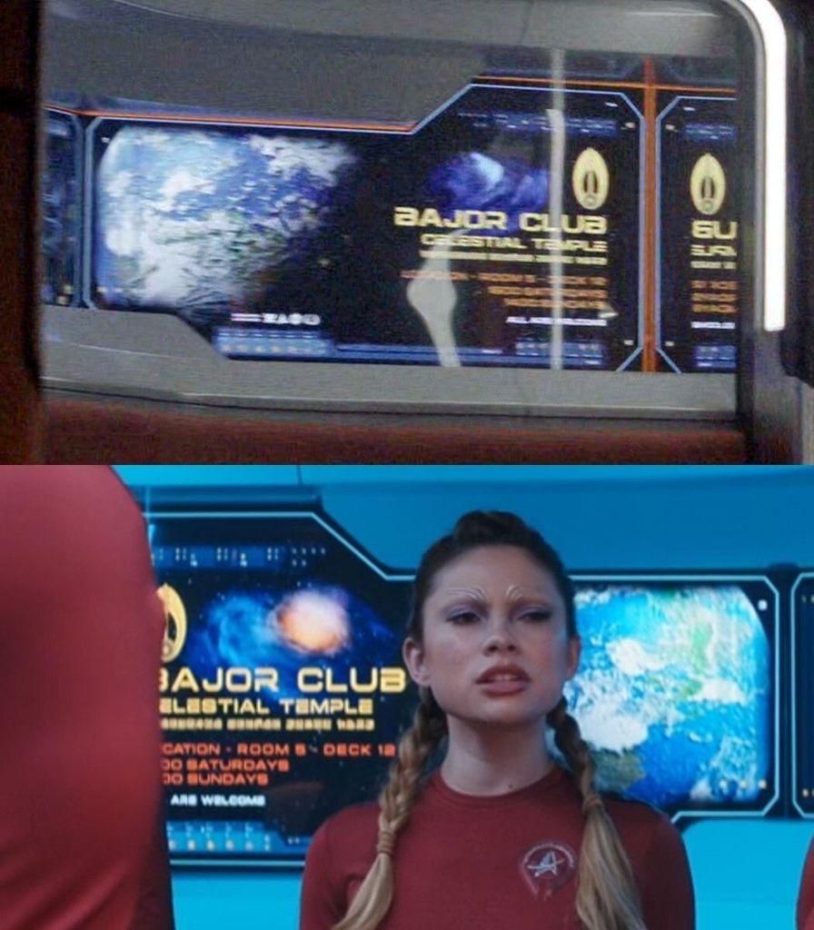 Both #StarfleetAcademy's "Kids These Days"⬆️ and "Vitus Reflux"⬇️ feature ads for the Bajor Club (Celestial Temple) at Starfleet Academy. The graphic features an animated wormhole, a shot of Bajor (definitely not a re-use of Kiley 279 😜) and the Bajoran emblem. All are welcome! 😊 I haven't written an article on that emblem for Ex Astris Scientia yet, mainly because it appears soo many times on #DS9. I really should! 😅