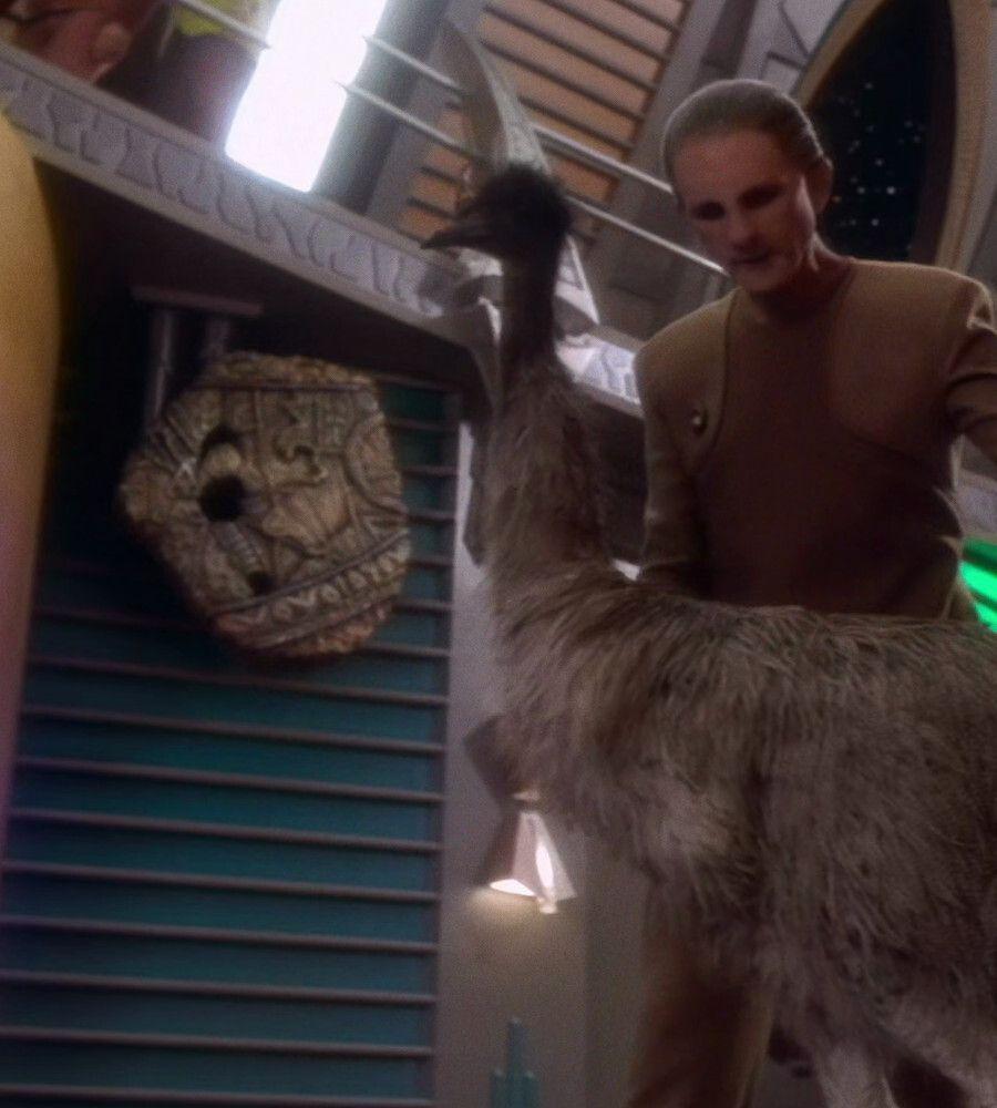 The Promenade on #DS9 features this highly decorative sign, seen up close in only a few episodes, like here in #StarTrekDS9's "If Wishes Are Horses". If you look closely, you can see another highly stylized interpretation of the Bajoran emblem. :-)