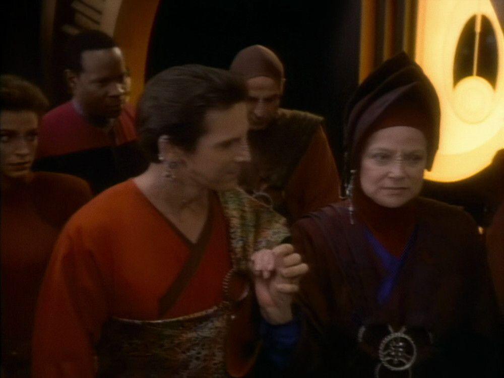#STarTrekDS9's "Duet" (what a great episode!!) is the third episode in a row which features a Bajoran officer stationed to #DS9 wearing the ensign rank pin. Ensign Neela appears for the first time in this episode but will have a much bigger role (and better pin close-ups) in the season finale.