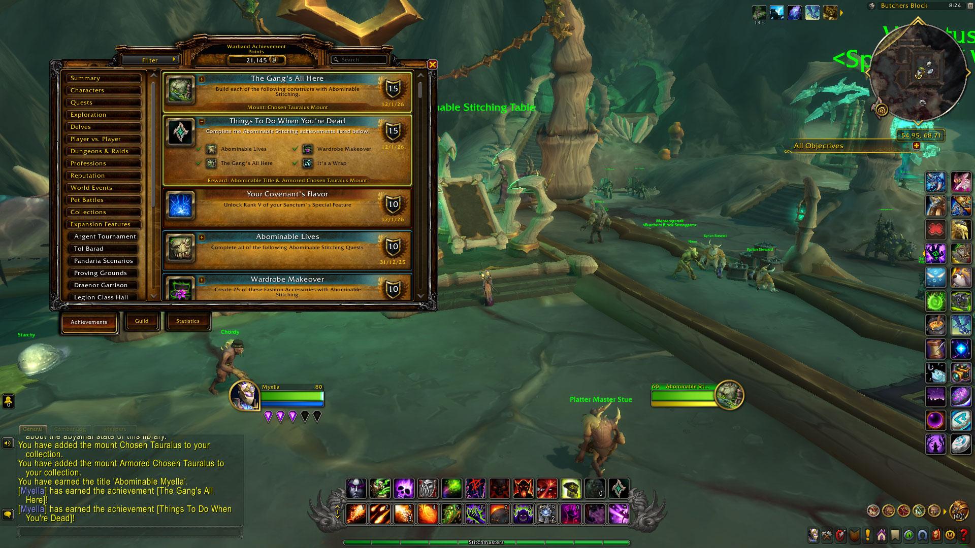 On one of my characters in WoW, I have been doing old Shadowlands content because I wanted to get the Stitchyard achievements. Finally got it completed tonight with "Things to Do When You're Dead". Why did I bother with these? Uh, hello, its a Stitchyard! The name of the achievement helps, along with the mount as the reward for doing it.