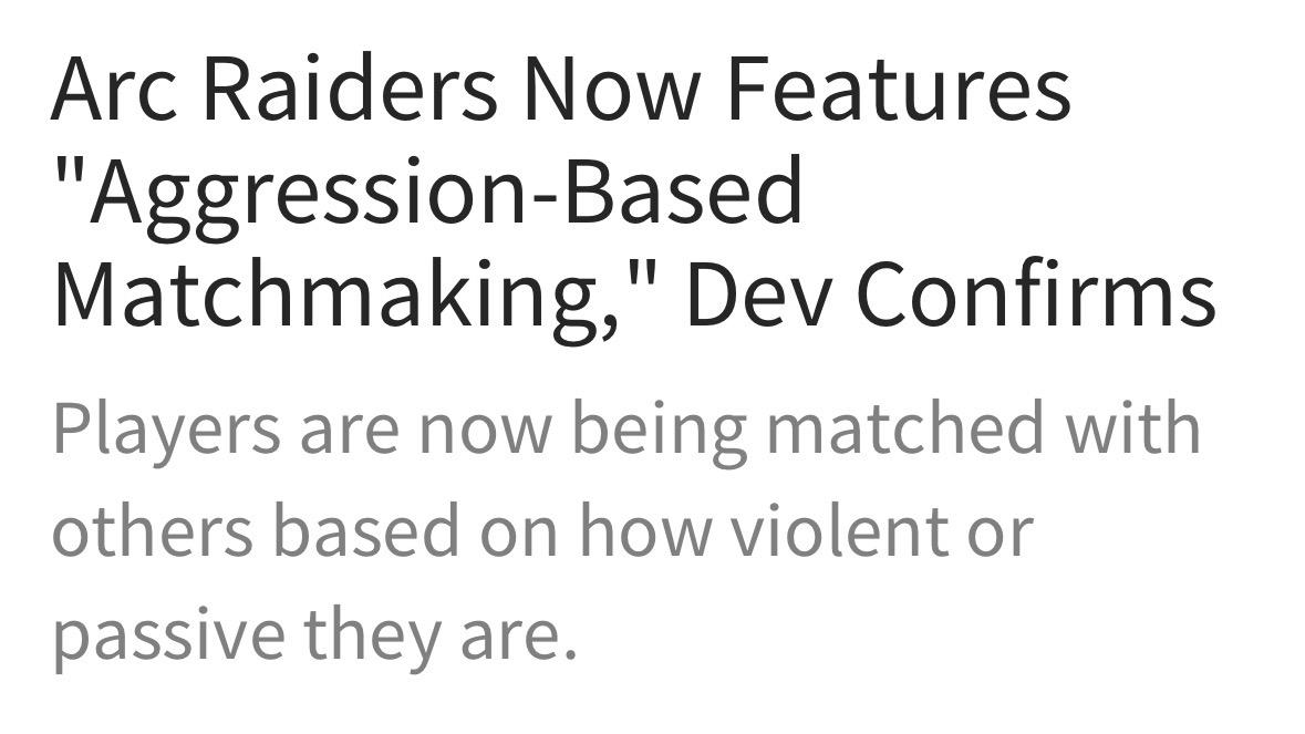 Sen lisäksi, että Arc Raiders on ihan ässä videopeliksi, niin siinä on aggressiivisuuteen perustuva kokoonpanomoottori. Jep, keksin juuri sanan kokoonpanomoottori. Eli pelissä, jossa on PvE ja PvP -elementtejä, peli yrittää muodostaa peliauloja joissa on enimmäkseen jompaankumpaan pelityyliin kallellaan olevia pelaajia.