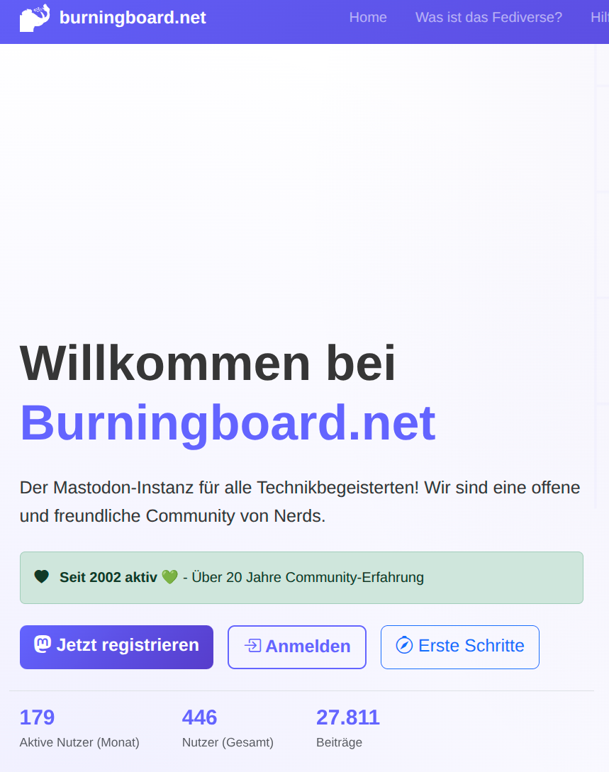 Habe die Webseite unserer Mastodon Instanz burningboard.net, auf der es viele nützliche Informationen zu Mastodon und dem Fediverse gibt, mal ein wenig überarbeitet: