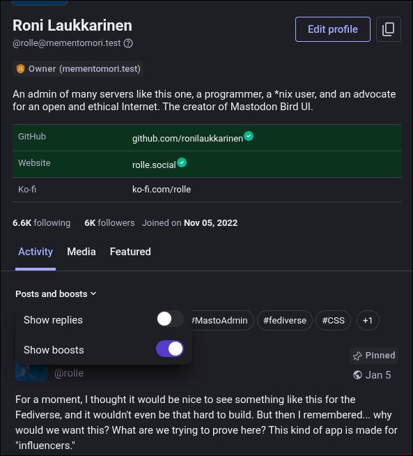 I feel like my Mastodon fork will eventually go completely off-branch since I've been cherry-picking features anyway after 4.5. Some of the core ones just don't make sense to me.