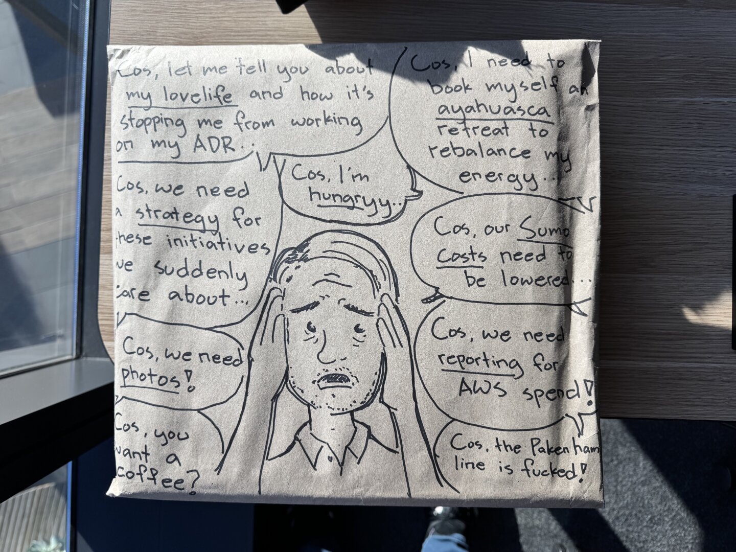 Sometimes, I'm awake thinkin' about fuckin' things up for myself again. So relax and sit there, my organs know I mean well even though they're all gone but they're content.