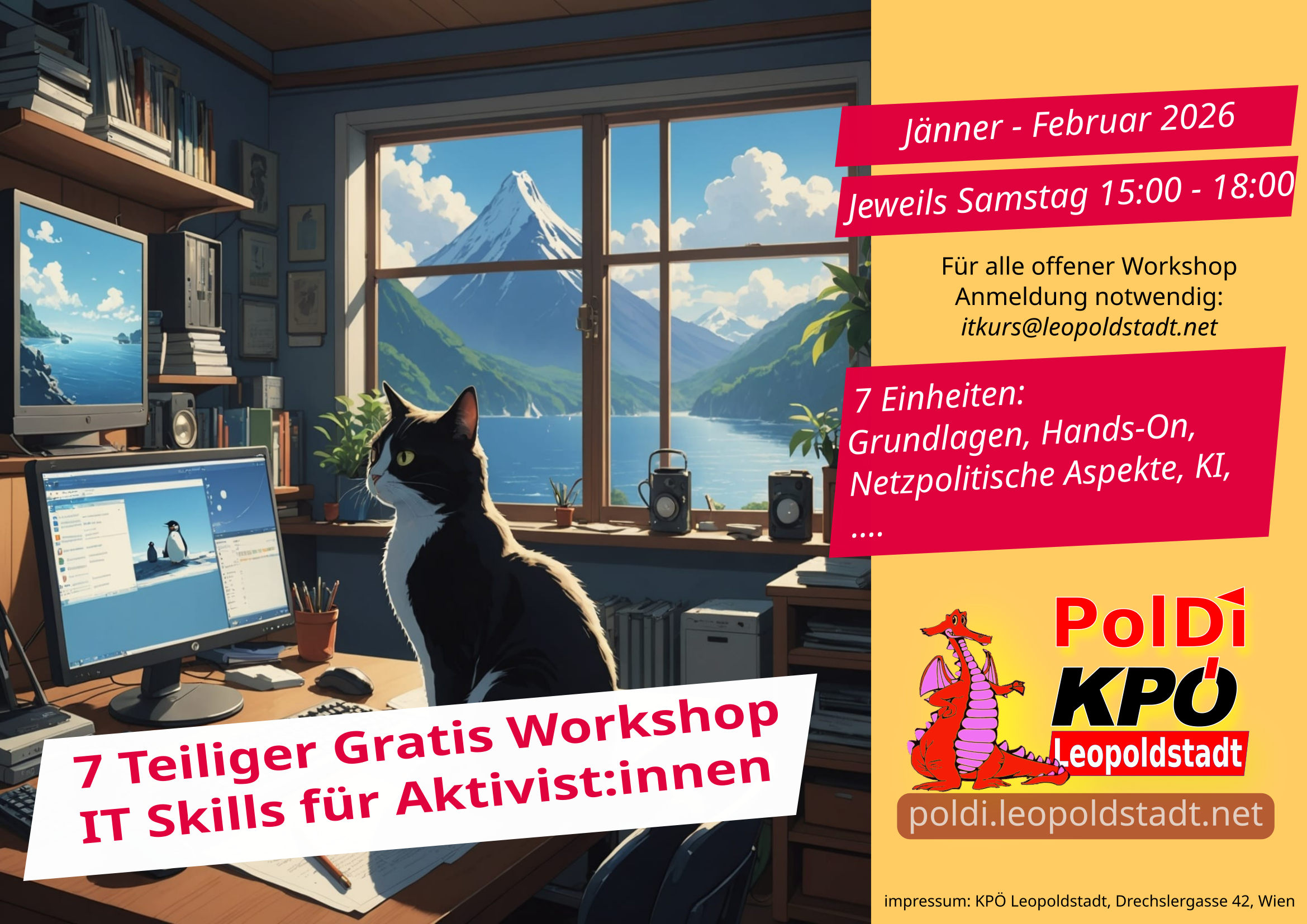 Jänner bis Februar 2026: unseren 7-teiligen gratis Workshop: IT-Skills für Aktivist:innen.