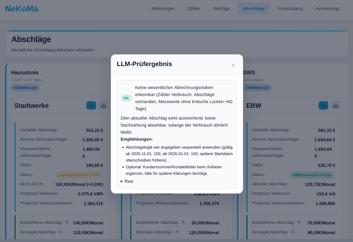 Optional(!) ist das Gegenprüfen mit einer AI für die Verbrauchsdaten. (API Key erforderlich, oder lokale LLM).