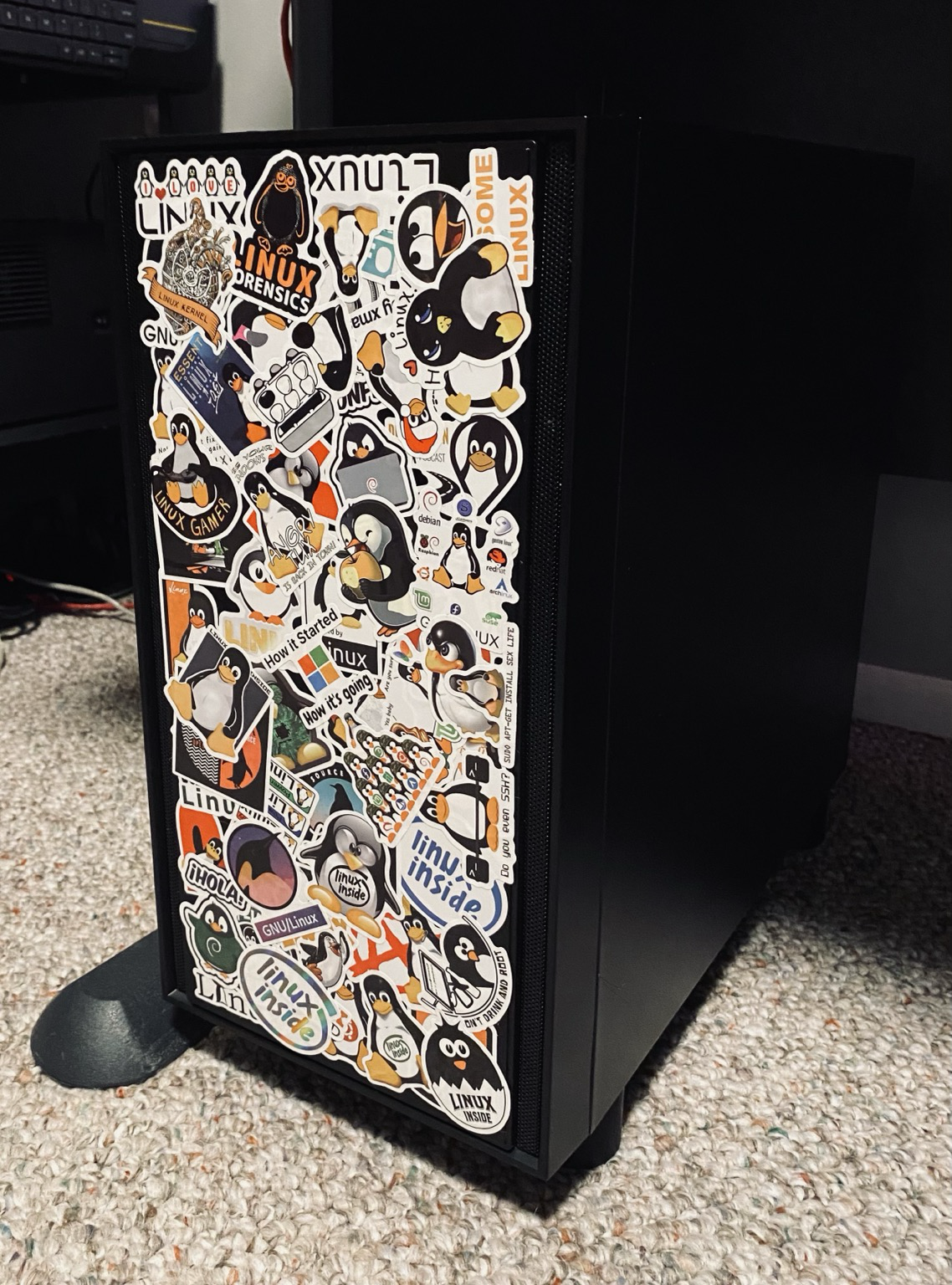 Awhile back I got a cheap “Linux” sticker pack with way more stickers than I wanted. They now decorate this PC that I put together from spare parts. This PC can only run Linux now :) #linux #pc #pcbuild #linuxgaming