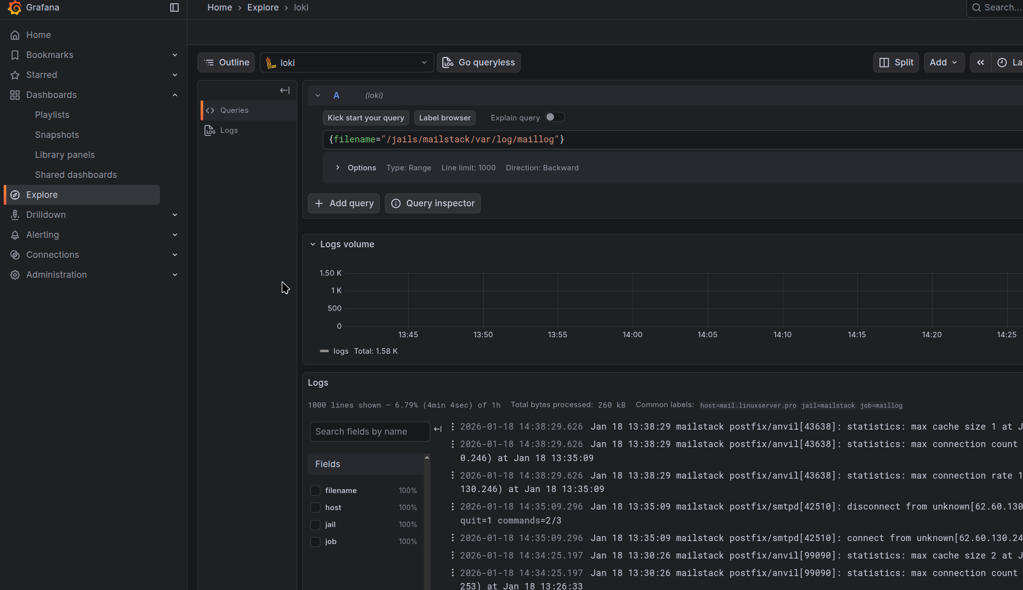 And finally added the last piece to my new Mailserver: Observability via Promtail/Loki. Done for today 🙂