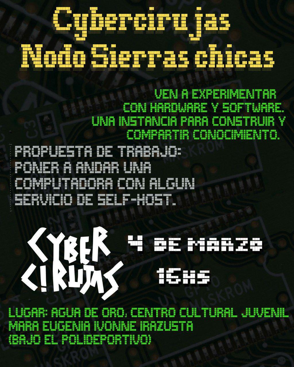 Tremenda movida armó la célula #SierrasChicas de #Cybercirujas en Agua de Oro. A aprender sobre #selfHosting para dejar de depender de los terratenientes del dato. #AutoHosteo