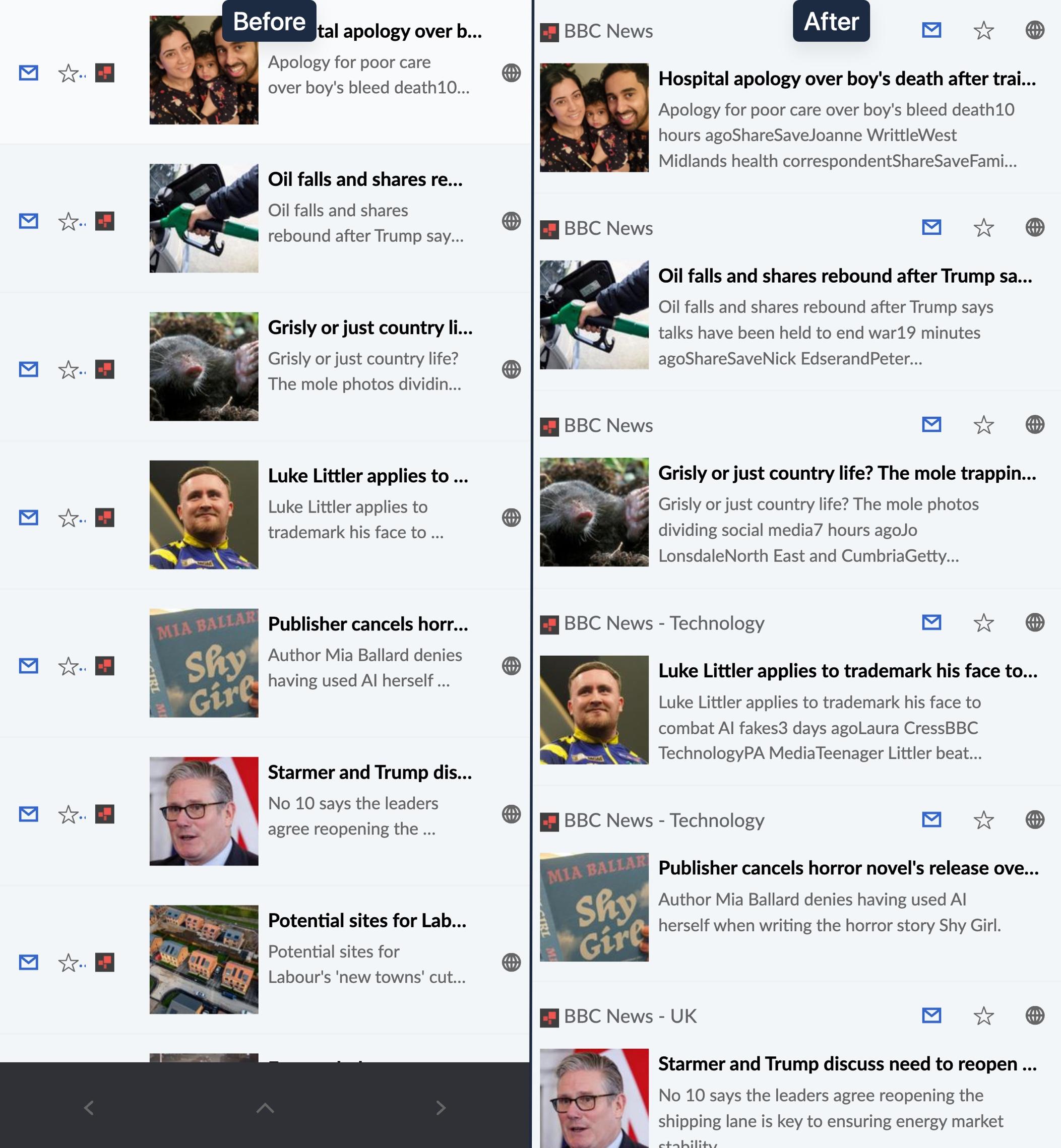 Been playing around with FreshRSS over the weekend. Pretty cool! Especially when combined with morss to convert RSS feeds that are intro only into full text feeds.