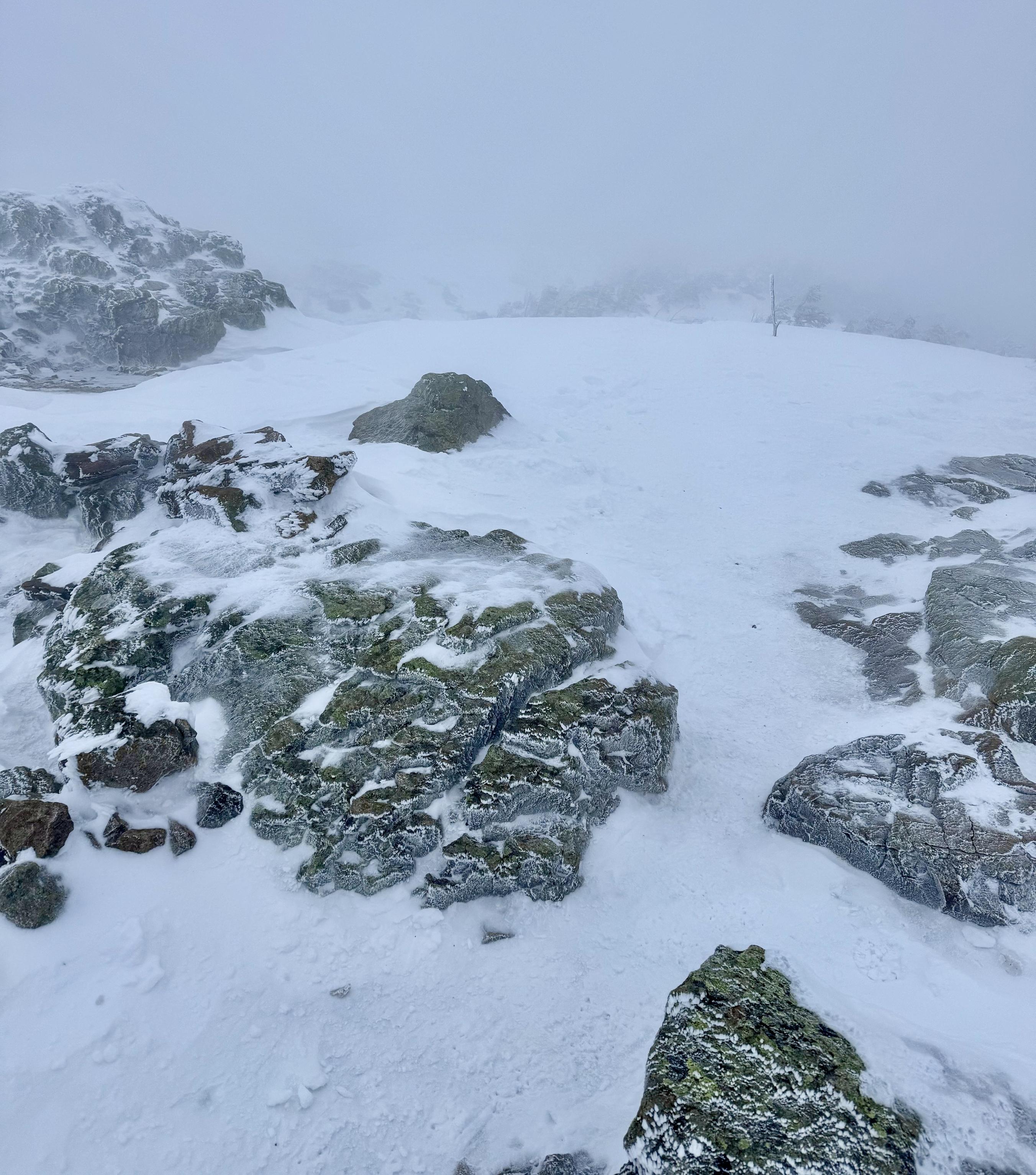 Just now returned from my first winter adventure of the season in the White #Mountains, NH and it did not disappoint! Great trail/snow conditions from trailhead to the summit. Strong winds and low visibility (low clouds) above the treeline made for a hostile/eerie environment at the summit with images of frozen boulders disappearing into the mist (top left pic). A fun challenge! #hiking #nature #snowshoeing