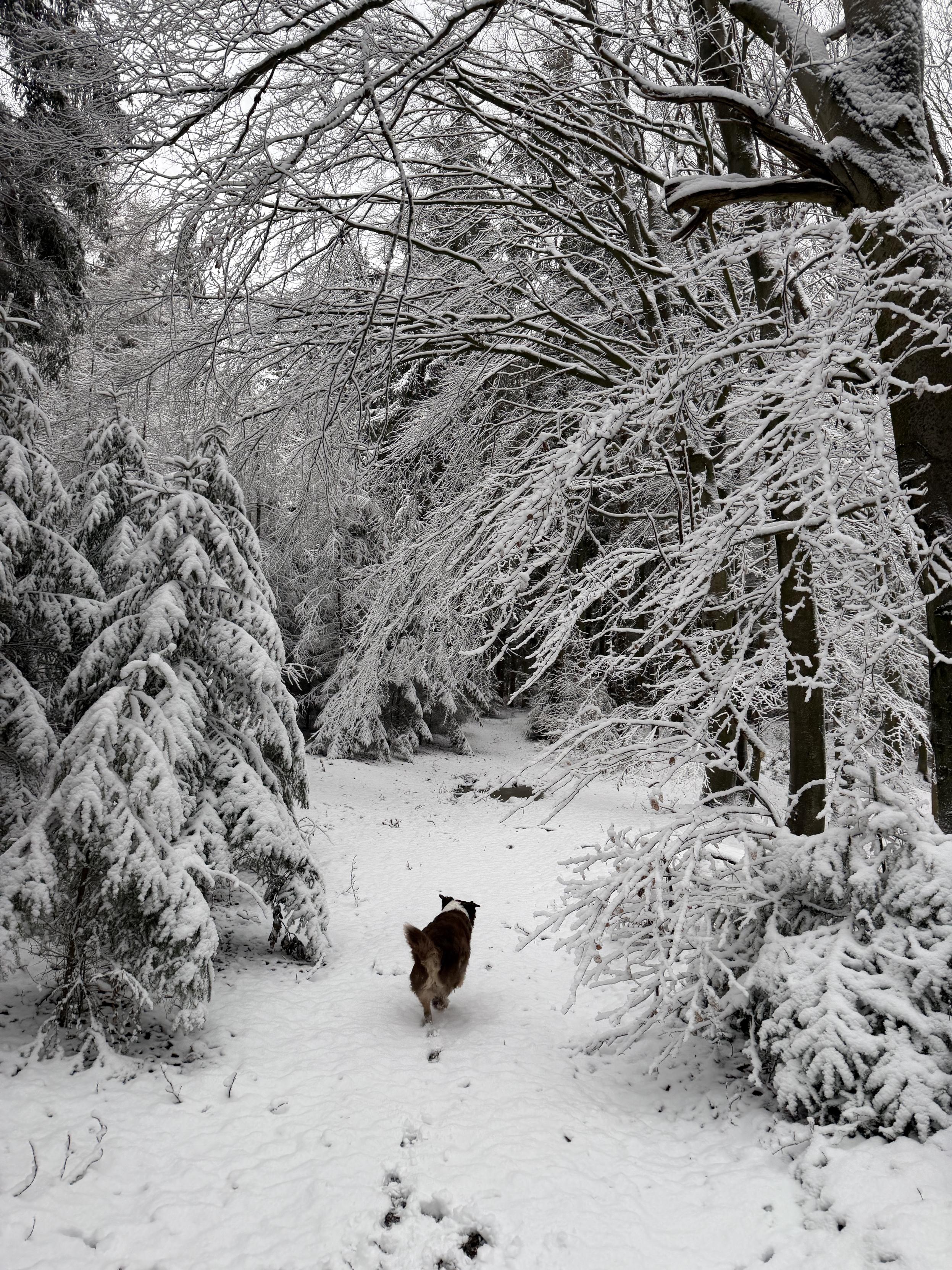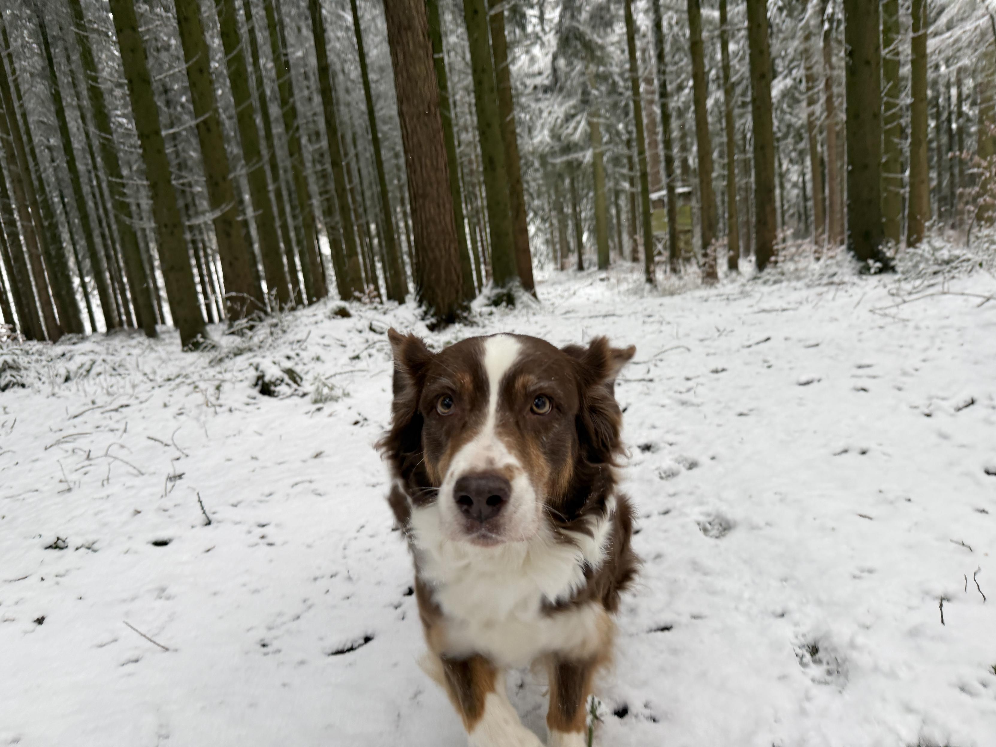 #snow #dogs #dogsofmastodon #outdoor #forest #aussie #australianshepherd #winter #pets