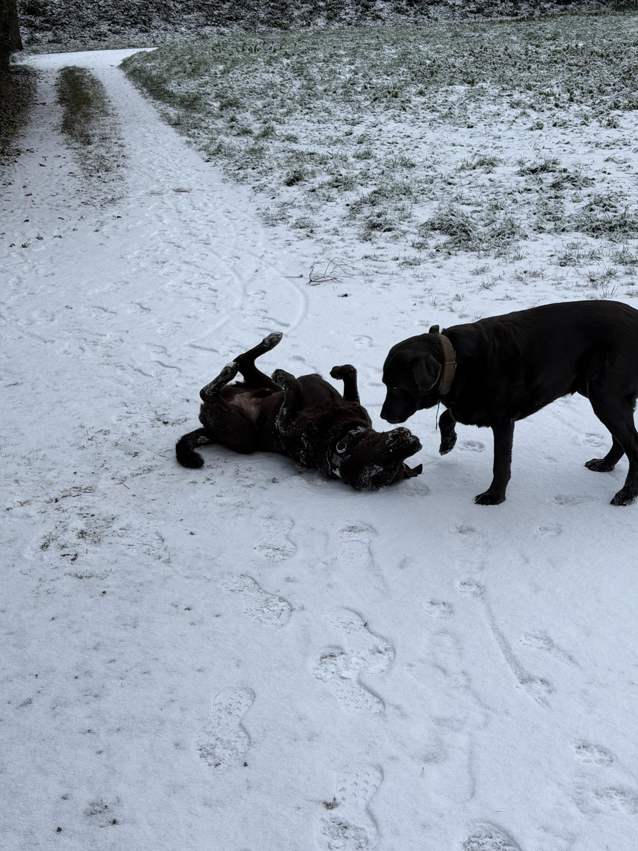 Woke to a surprise — snow changes everything. Nice morning for a dog walk. 😊