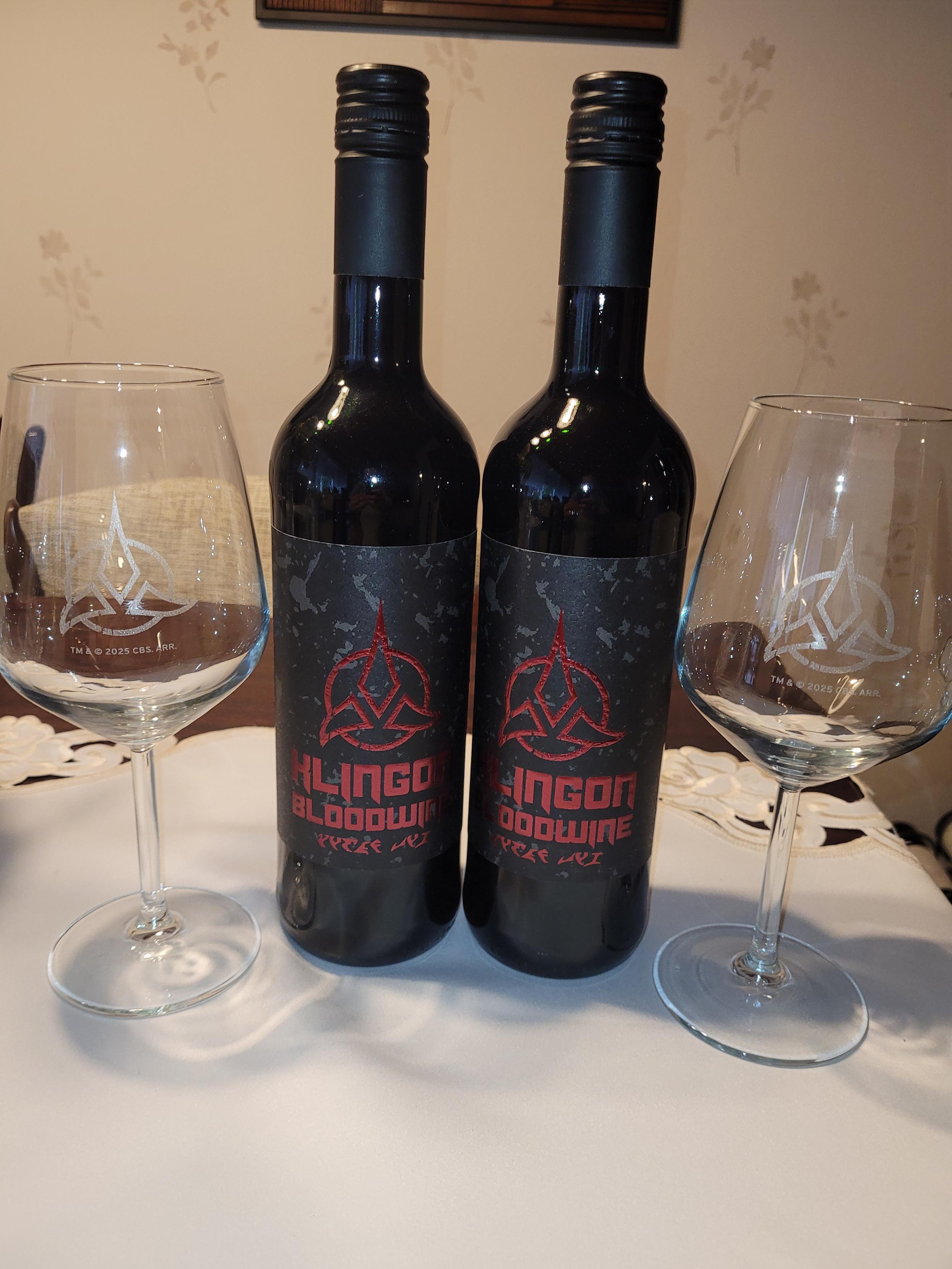 My Klingon bloodwine from V-Sinne arrived today, including wine glasses with the Klingon emblem! :-) I'll definitely try this out on #StarTrek night with my friends this weekend!