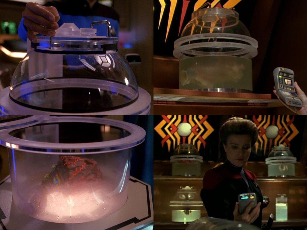 The large transparent "pod" (and more of the same type) in which the Trill symbiont is kept in #StarTrekTNG's "The Host"⬅️ will be seen again in later #StarTrek episodes. Similar pods are used by the Vidiians to store spare organs in #StarTrekVOY's "Phage"➡️, for example.