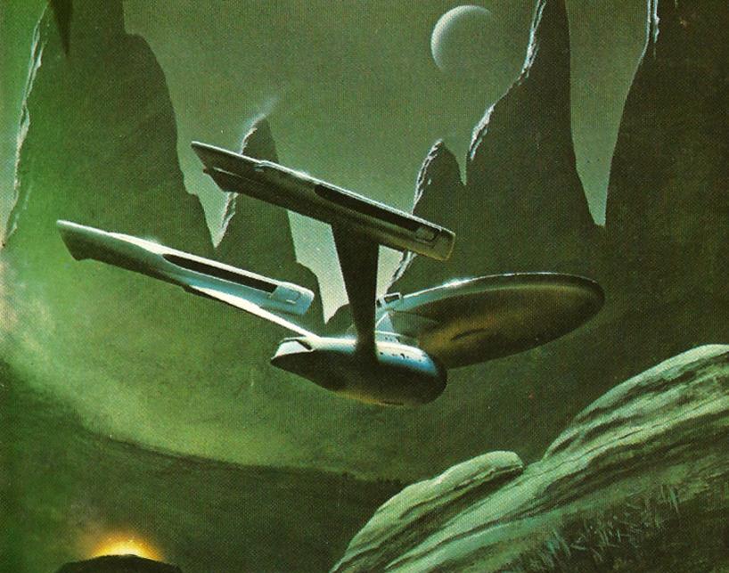 The Starship Enterprise in Chris Moore cover art for a 1985 edition of The Starless World by Gordon Eklund