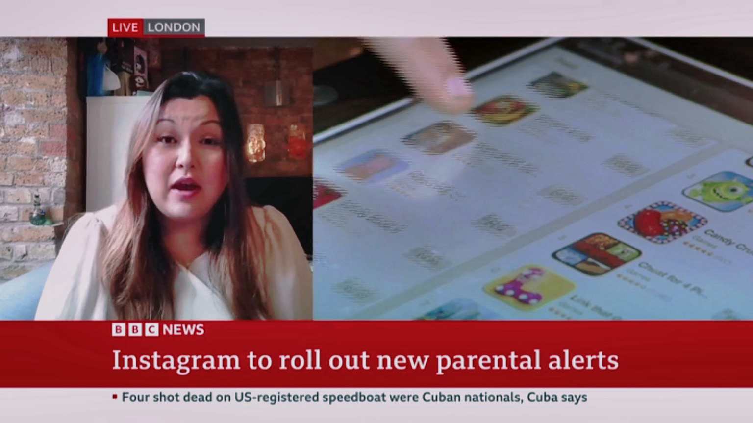 Just been on @bbcworld news channel discussing with Kasia Madera about Instagram’s new rollout of a feature that alerts parents if their kids are searching for self-harm and suicide-related content (which, let’s be honest, they’re not doing that…)