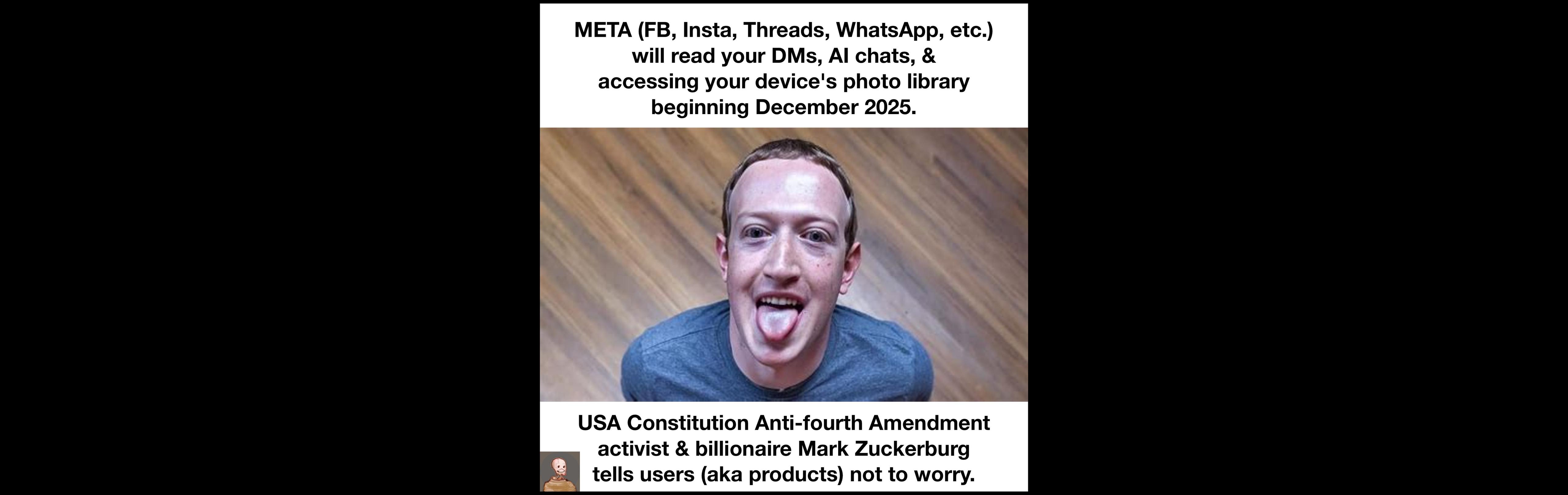 #Meta ( #FB, #Insta #IG, #Threads, #WhatsApp, etc.) will read YOUR DMs & AI chats & accessing Your device’s Photo Library beginning December 1, 2025.