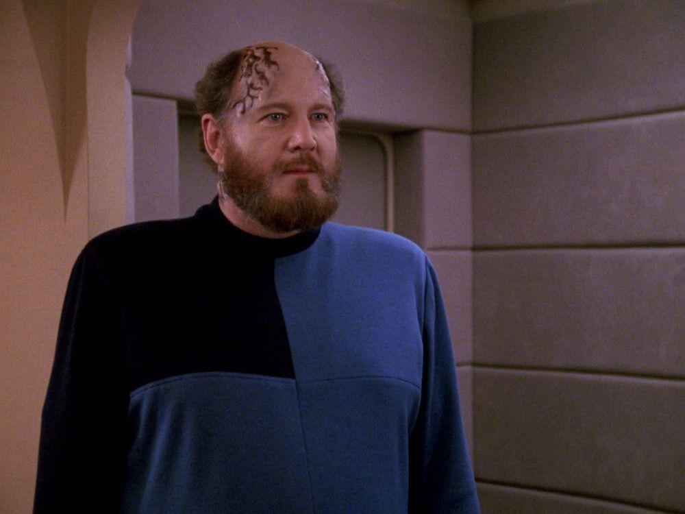 It would have been awesome if we had gotten a better look at the label on the door in front of which Dr. Timicin is strategicaly standing in #StarTrekTNG's "Half a Life", as this door was labeled "Head" and leads to the bridge toilet. Sadly, in all 7 season of #TNG, the label was never clearly legible.