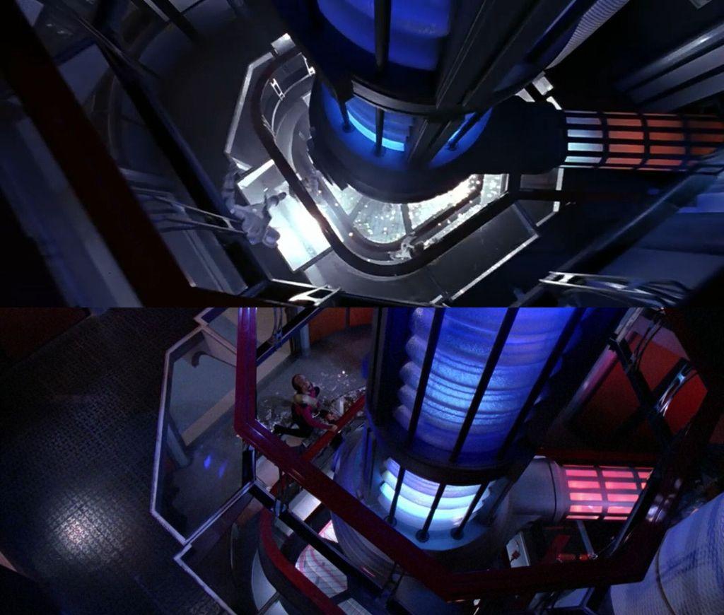 The USS Enterprise-A's warp core (and engineering) in "Star Trek VI: The Undiscovered Country"⬆️ looks exactly like the USS Enterprise-D warp core (#StarTrekTNG's "Heart of Glory"⬇️) as the #TNG engineering set was redressed for the sixth #StarTrek feature film.