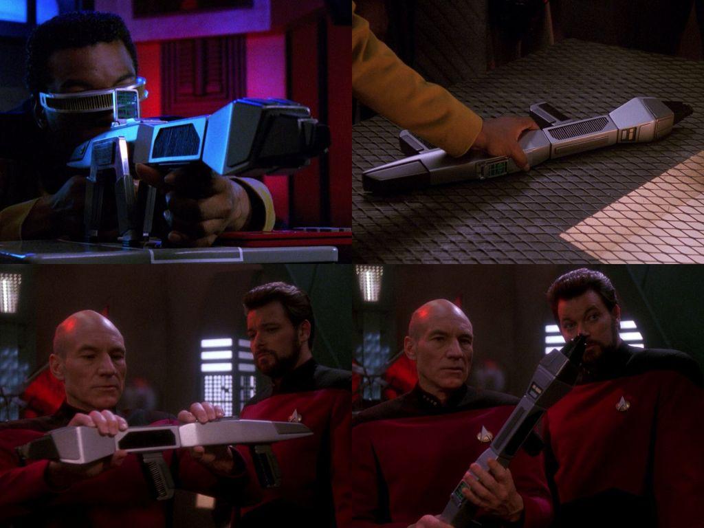 The type-3 phaser rifle is seen for the first time in #StarTrekTNG's "The Mind's Eye". It will go on to appear in later #TNG and #StarTrekDS9 episodes. Here it is in all its clunky glory! :-)