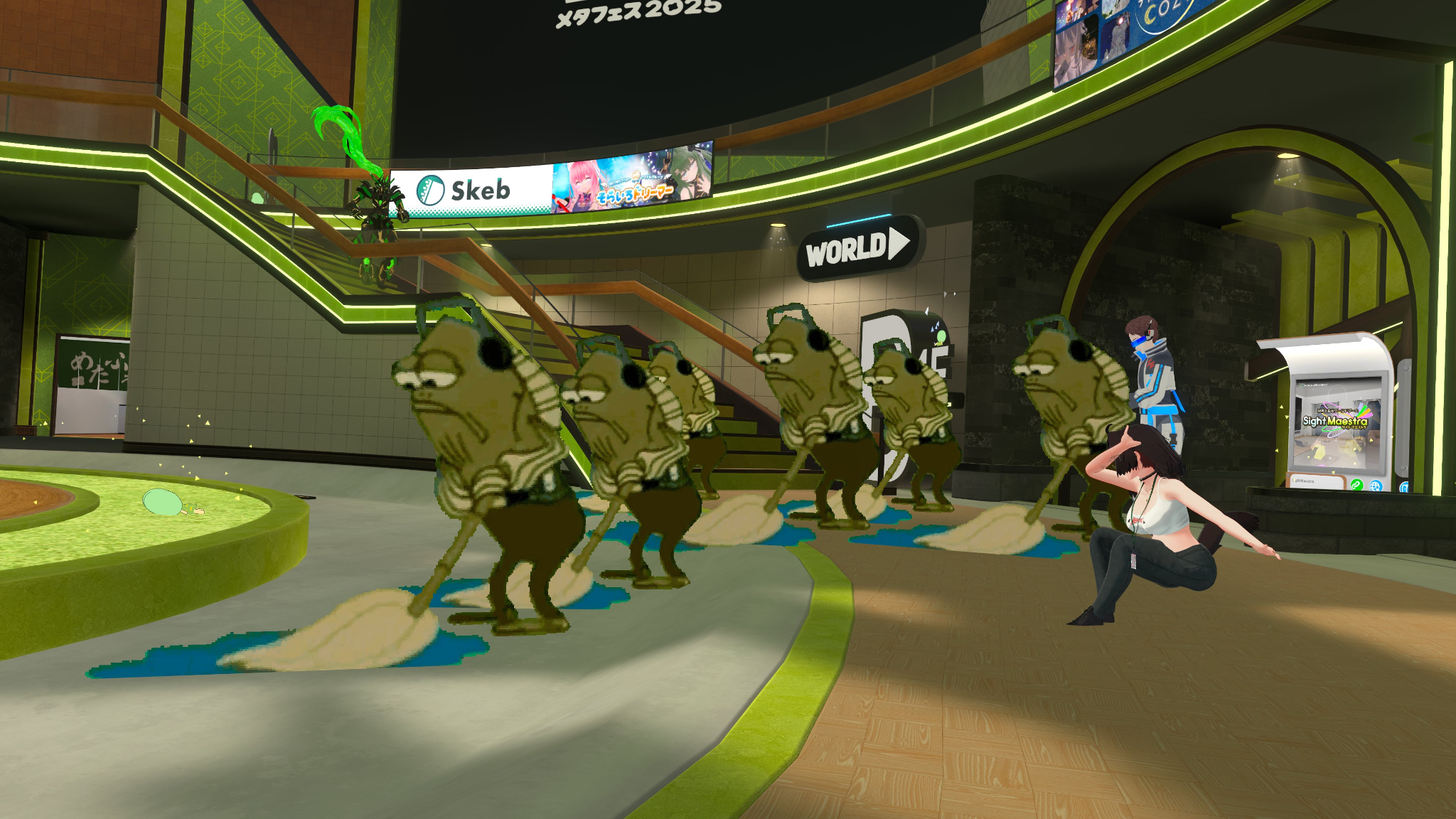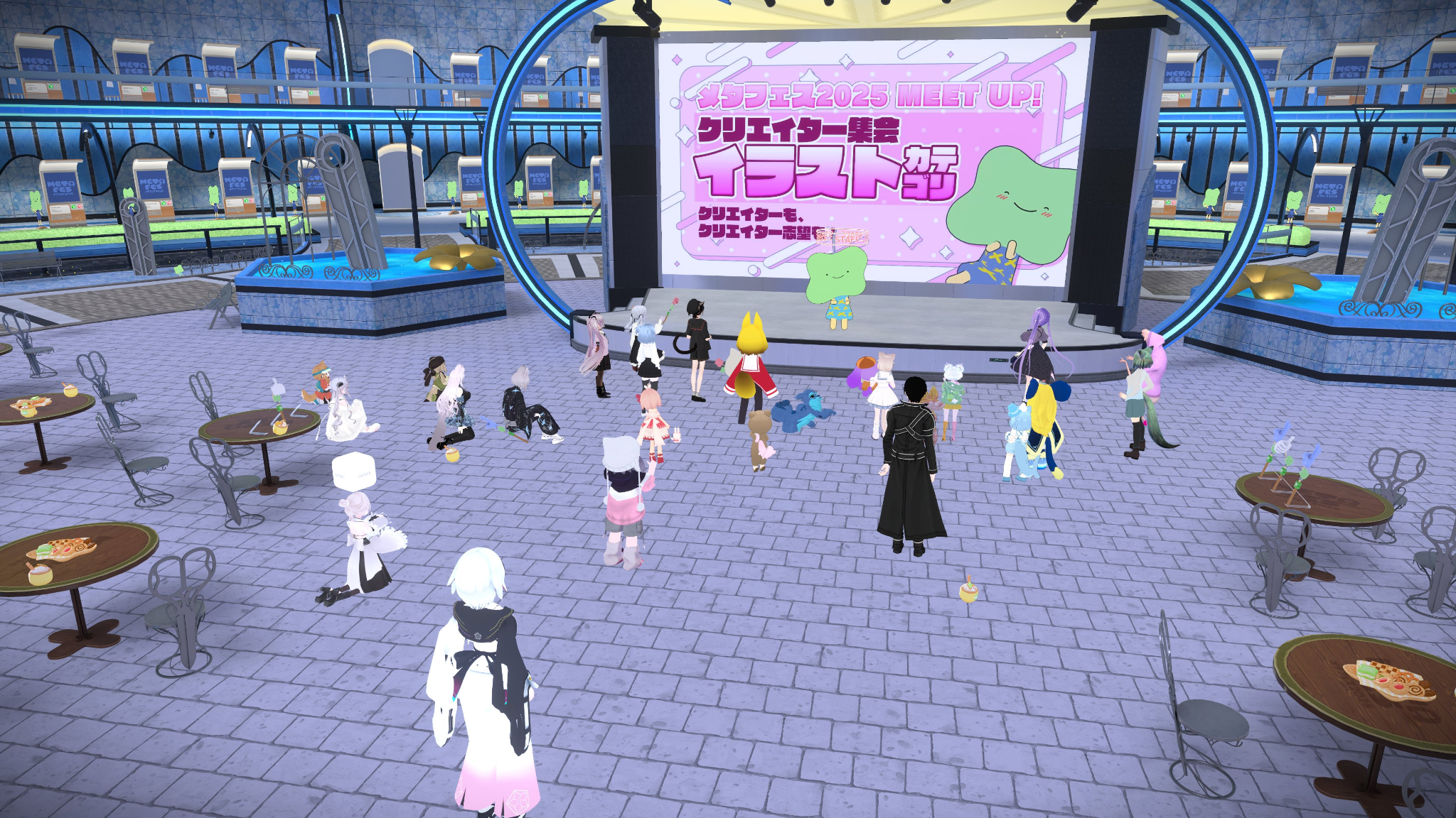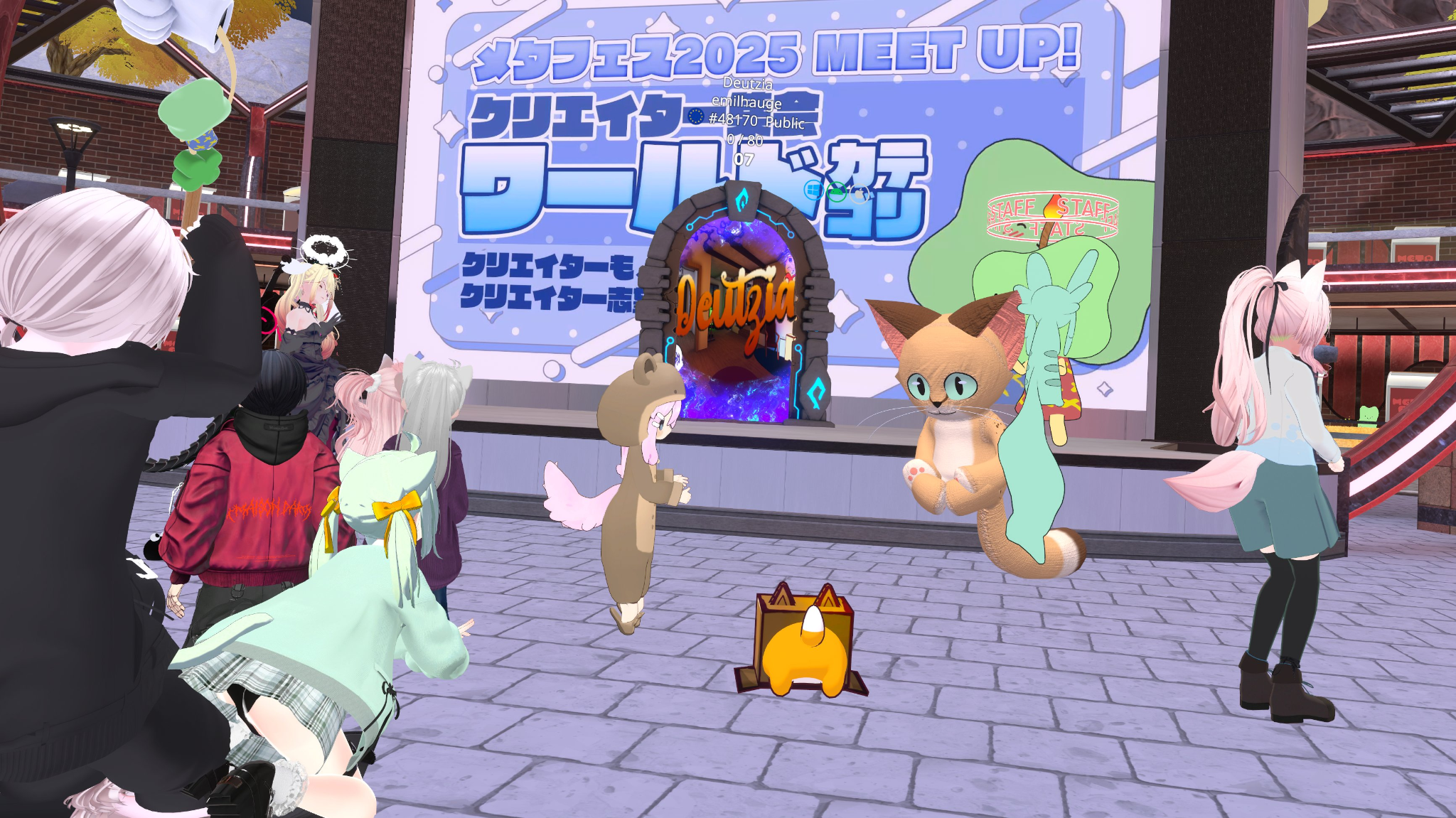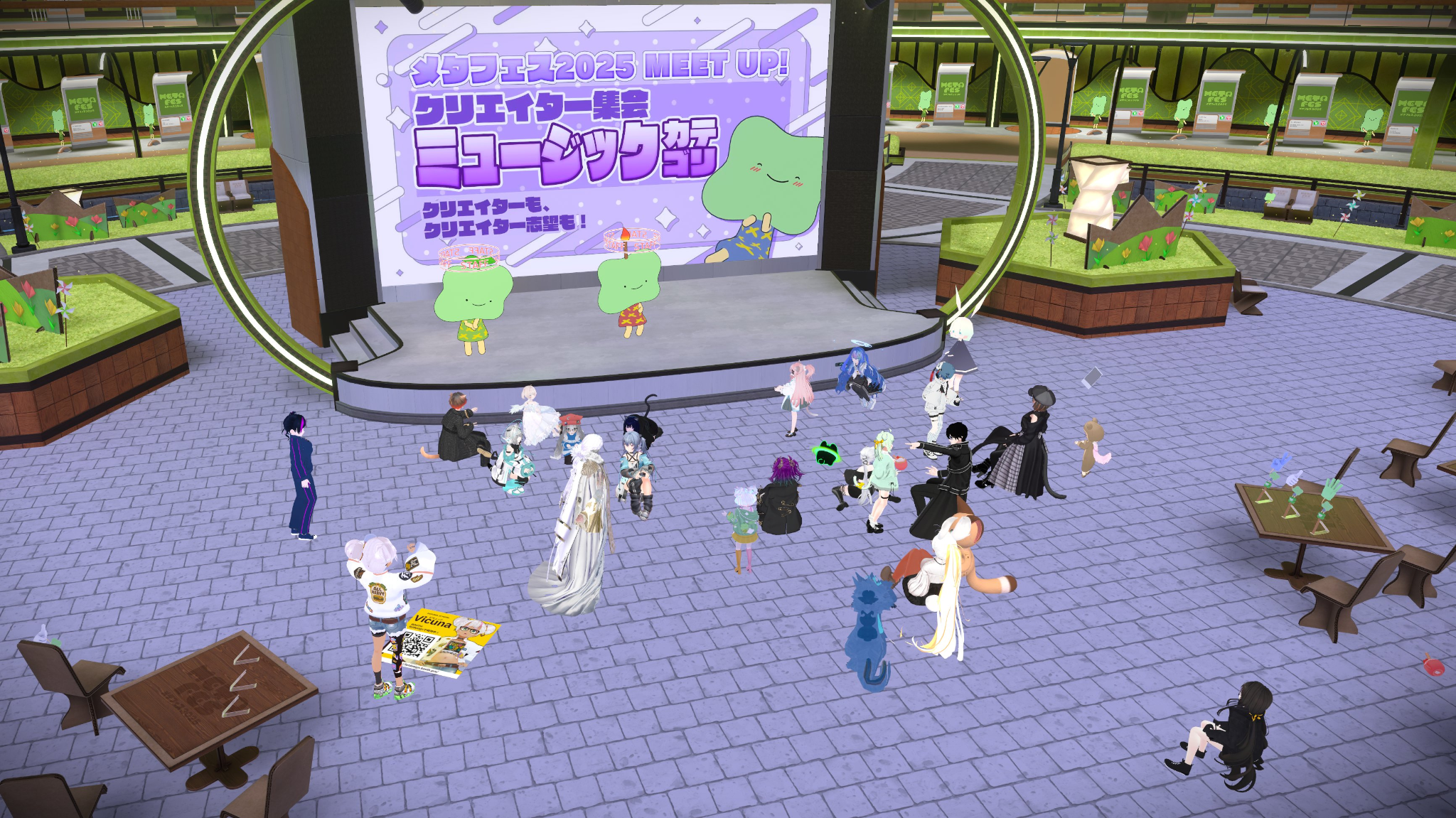 🍀 #METAFES Finale Tour 🍀 The illustrator meetup was fun! We got to see many showcases via VRChat-Sticker format! I find that very smart. Final meetup for Metafes 2025 is the Music meet up! We got to meet people who sing and compose music! So many talented people.