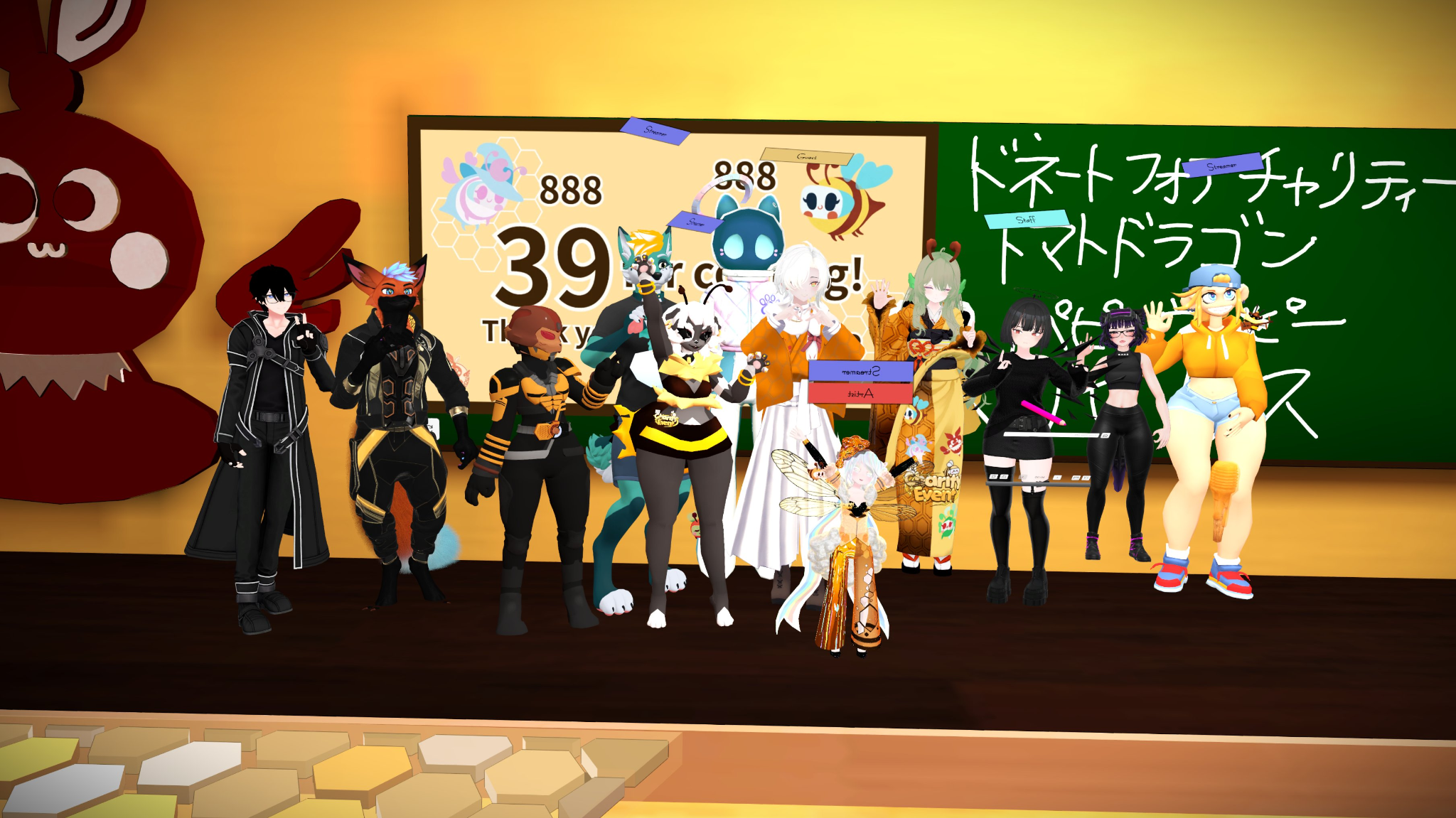 Our first 2 Performers of the event were @starheartVR & @RuTransverse ! I loved what they did for the charity event! I always enjoy being there to support wonderful friends like them when the timezone allows it. :3 It was so fun learning Japanese with To you both, I say 888 & 39! ( pachi pachi pachi & sankyuu) !