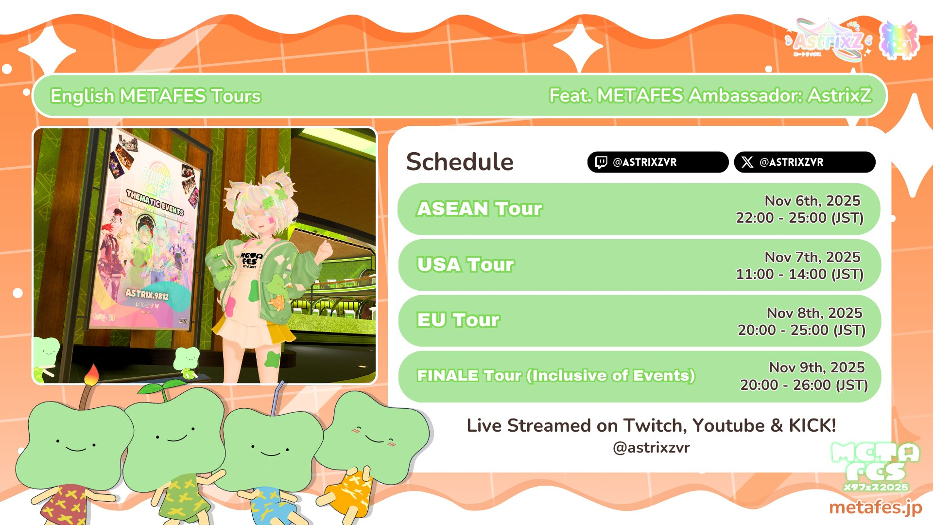 Excited for the METAFES English tours? ASEAN, USA & EU tours are scheduled! The Finale includes a fun visitation to official events! (Please download a translator.)