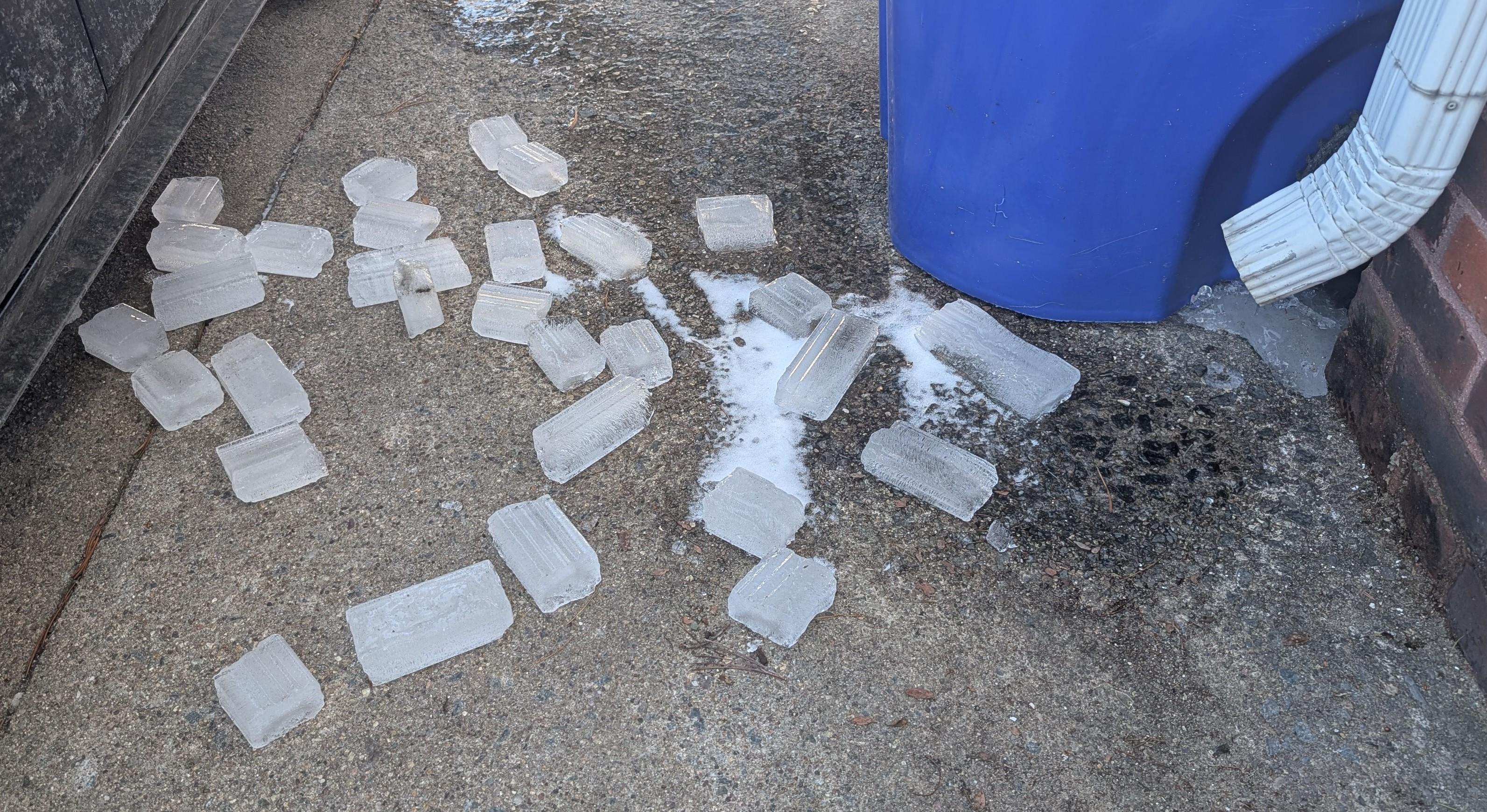 You see some cool stuff outside after long bouts of cold weather. For instance, my downspouts became automatic ice brick machines in the morning sun.