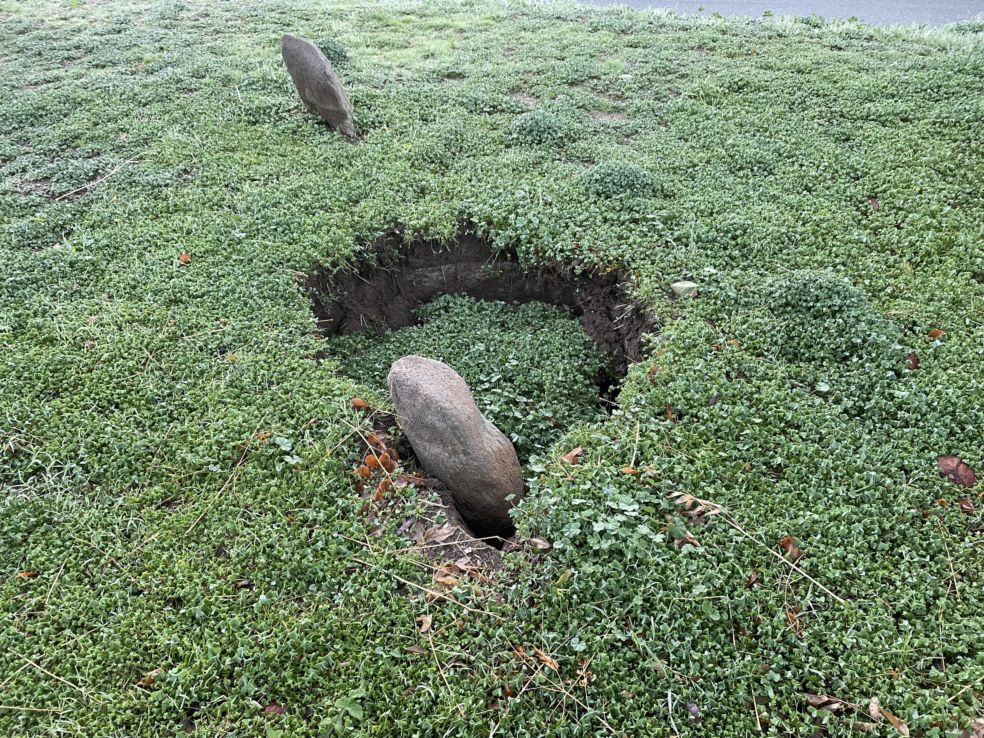 We awakened to find a sinkhole in our stone circle! Is it an omen??!!