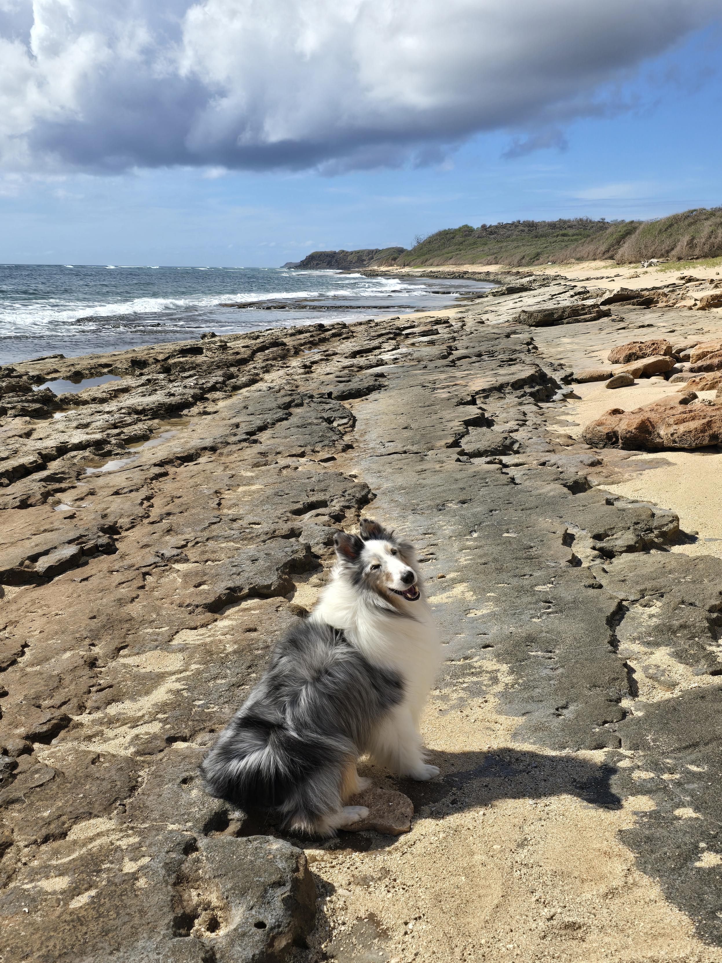 #pets #dogs #doggo #dailydoggo #floof #shetlandsheepdog #sheltie #Hawaii #Molokai #wx #beach #dogsofmastodon #cute #weather