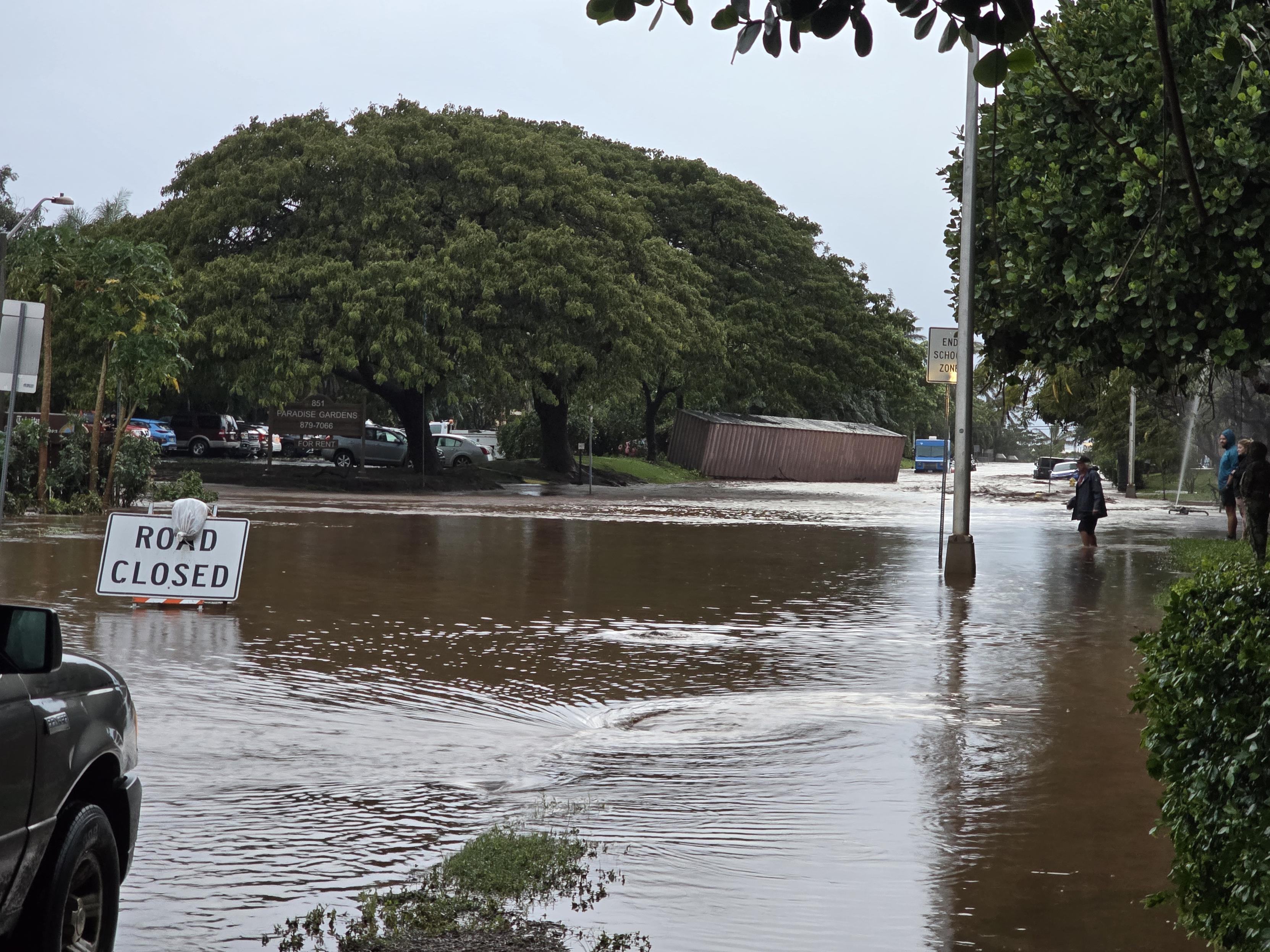 The power went out Friday evening and it still isn't back on in my neighborhood as of Sunday morning.This photo was taken yesterday on the street I live on. Lots of places in Maui look just like this. The container in this photo wasn't parked on this street at all, the flooding waters took it from one street over.