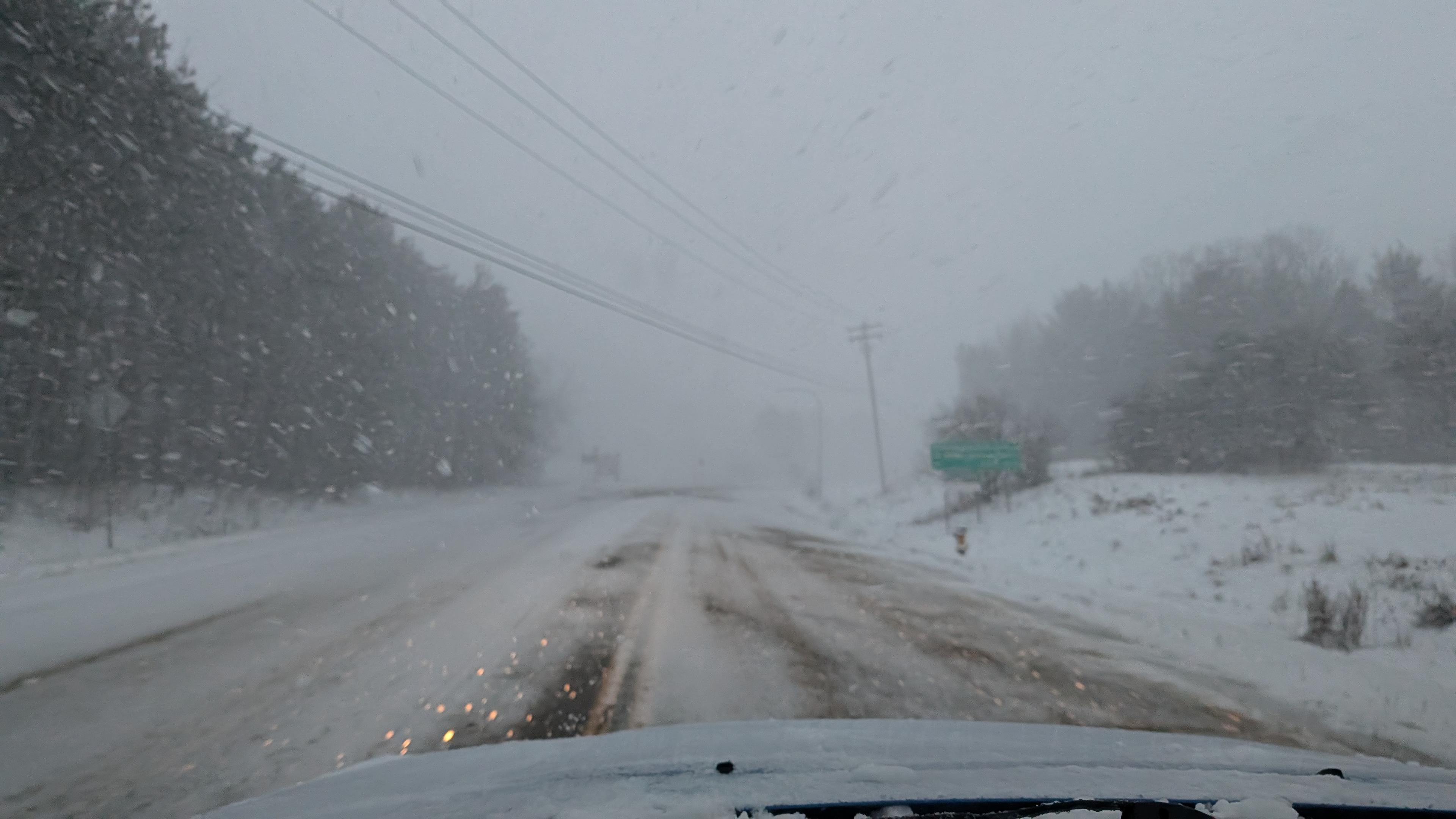 Travel advisory: strong winds and snow accumulation up to 8", don't go unless you have to.